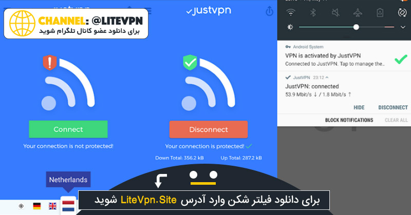 با دانلود فیلتر شکن just vpn تلفن همراه و نصب آن می توانید دسترسی نامحدود به همه وب سایت های فیلتر شده داشته باشید.