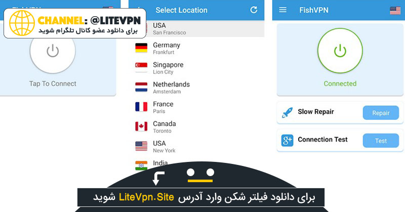 برنامه Fish VPN دارای سرورهای قدرتمند در کشورهای زیر است :