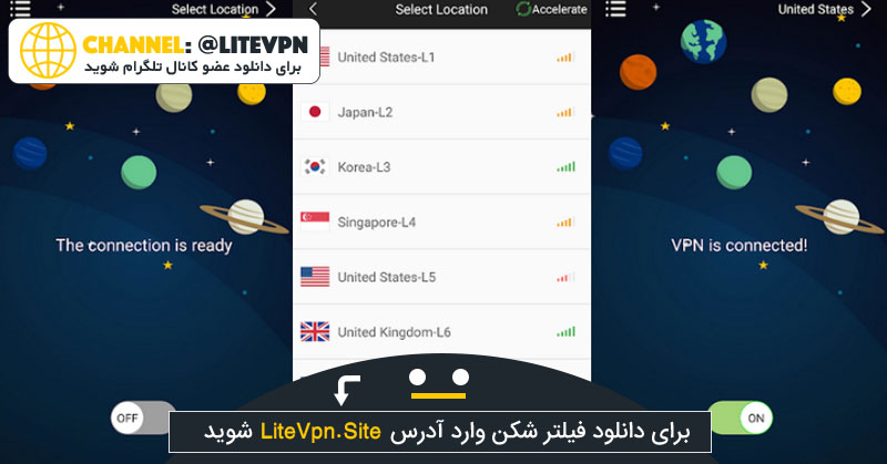 تنها روی گزینه ی اتصال کلیک کنید و به سایت هایی مانند: یوتوب، توییتر، فیسبوک و … بدون هیچ مشکلی وارد شوید.